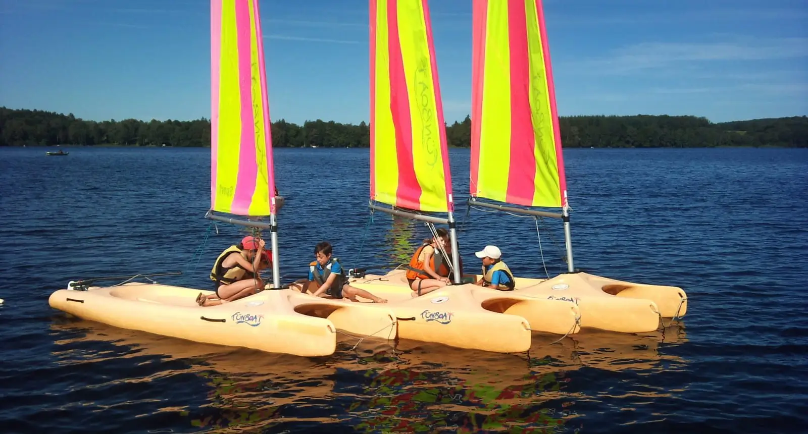 • FUN BOAT – VOILE Notre base nautique agrée FFT, propose ces catamarans monocoques plus faciles à diriger, sur lesquels un équipage de 2 va immédiatement apprendre ou progresser dans un cadre idyllique.